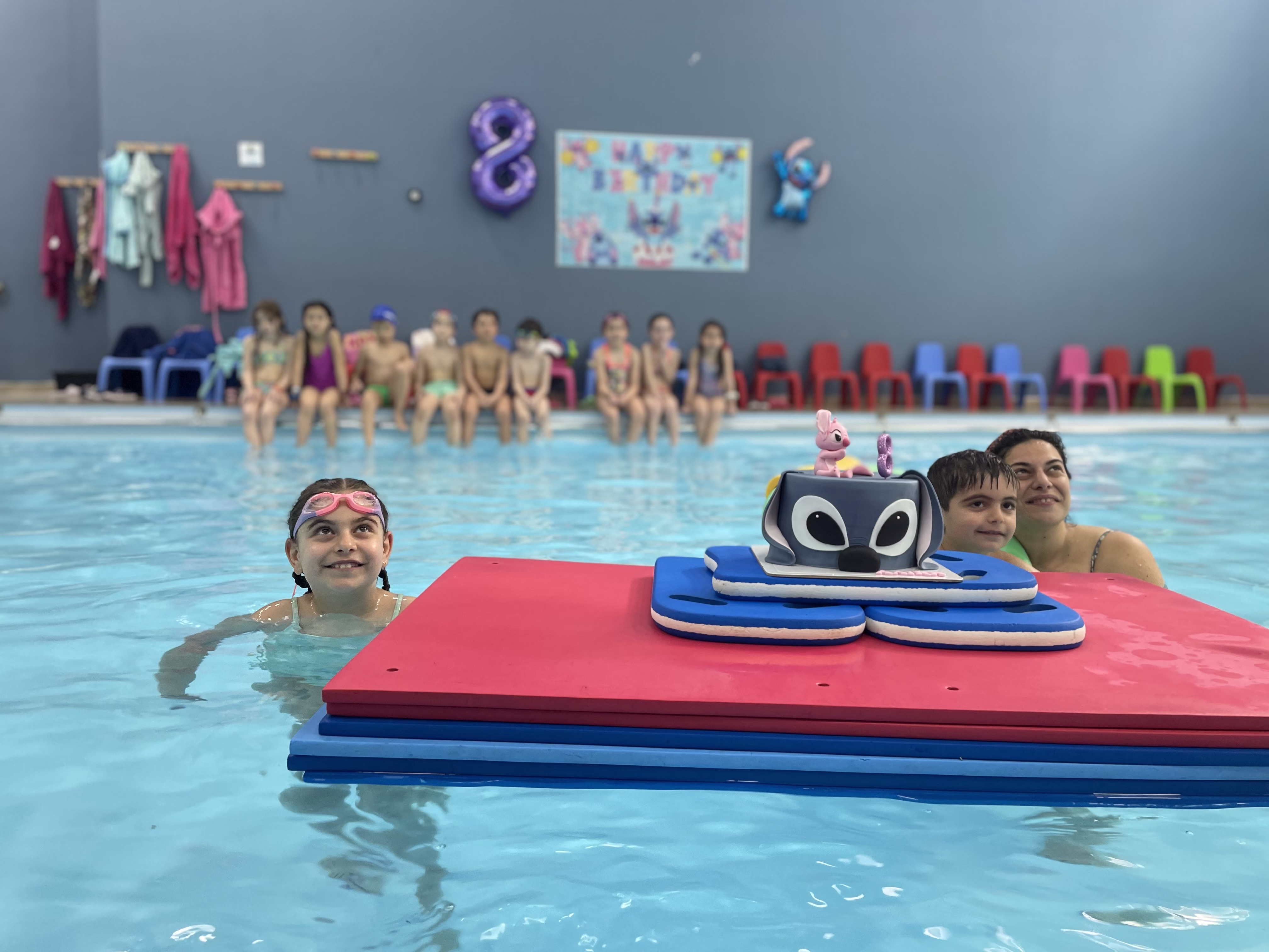 Καθώς οι μικροί μας φίλοι θα παίζουν, θα γελούν και θα σβήνουν τα κεράκια μέσα στο νερό (!) υπό την επίβλεψη εκπαιδευτριών‐ναυαγοσωστριών, εσείς θα απολαμβάνετε τον καφέ ή το αναψυκτικό σας και θα συζητάτε με τους άλλους γονείς. Όταν η διασκέδαση κορυφωθεί και μετά από πολλές φωτογραφίες, σειρά έχει ο μπουφές με λαχταριστές, σπιτικές λιχουδιές.